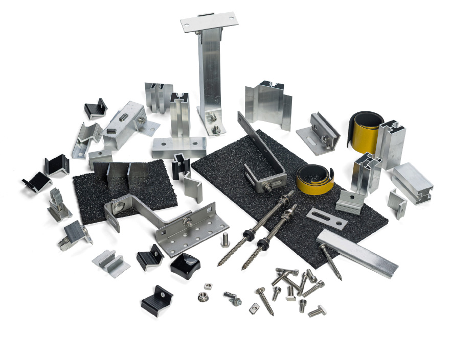 Kompletní nabídka SOLAR - Hliníkové profily pro fotovoltaiku, úchyty pro solární panely a konstrukce na FVE